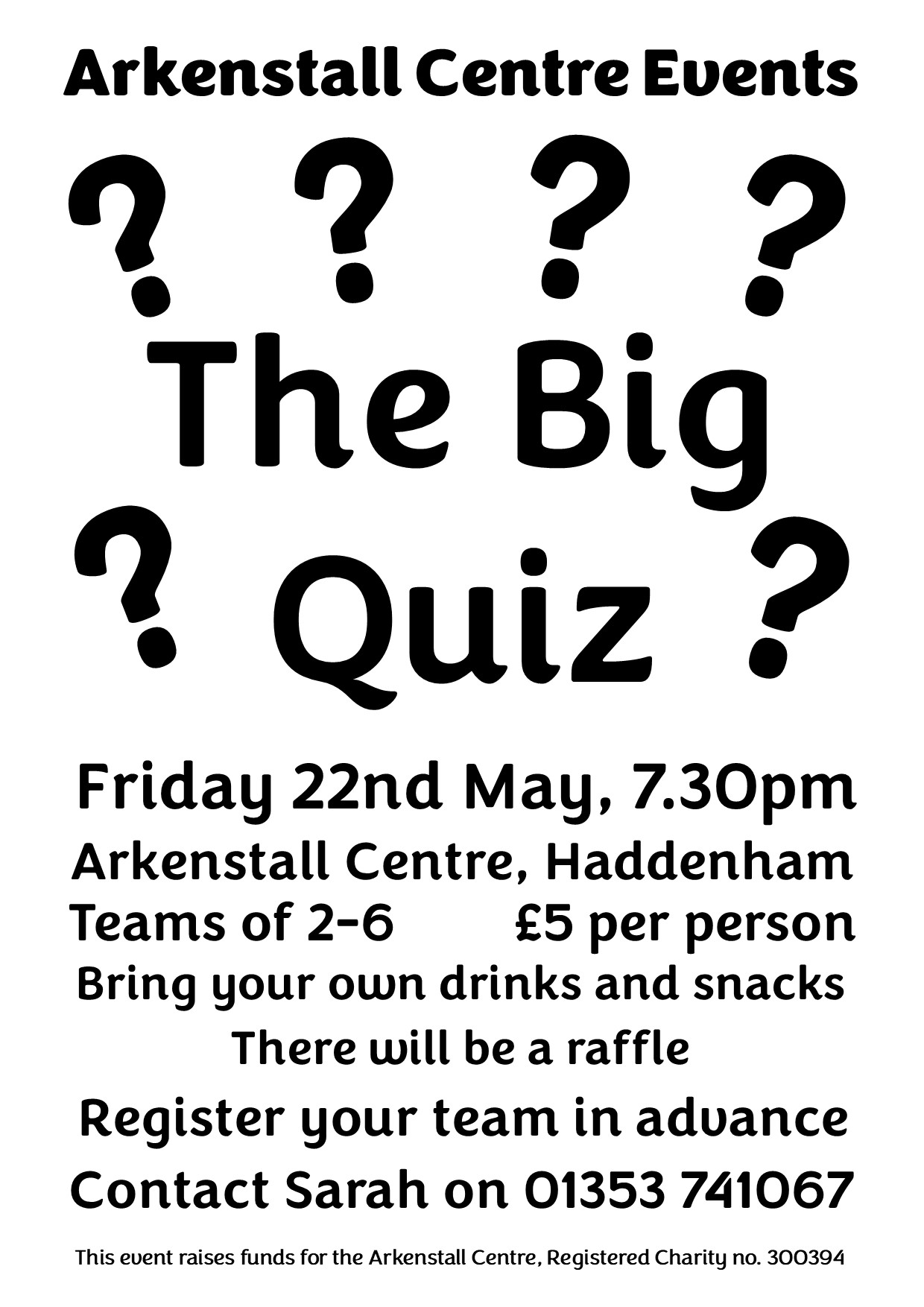The Big Quiz Friday 22 May 7.30pm £5 per person. Teams of 2-6. Contact Sarah to register